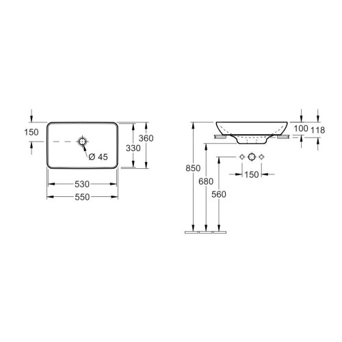 Villeroy&Boch Venticello - valamu, 55x36 cm, ülevooluga, ilma segistiava, Alpine White 411355R1