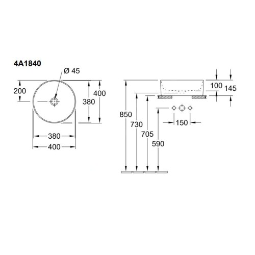 Villeroy&Boch Collaro - valamu, 40 cm läbimõõt, Alpine White 4A184001