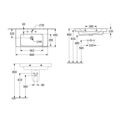 Villeroy & Boch Architectura - Valamu 80x45 cm, ülevooluga, segistiauguga, alpivalge 4A878001